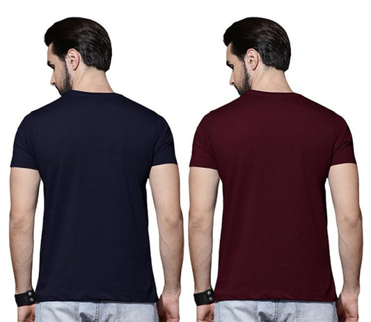 Cotton Solid Half Sleeves Men's Round Neck T-Shirt Pack Of 2 Maroon & Navy Blue